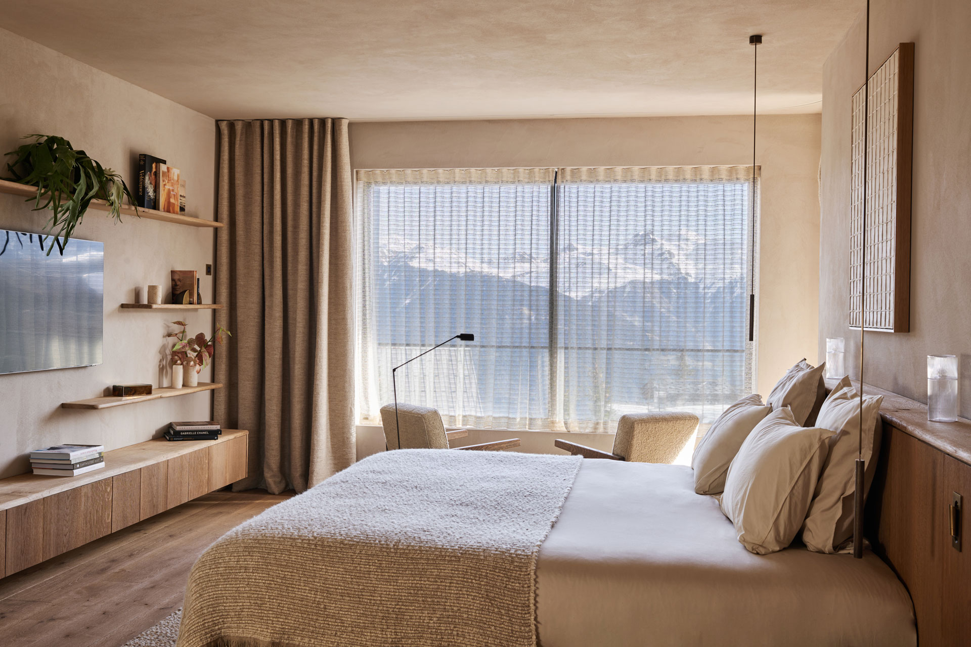 Le Black Lodge n’est pas un chalet de ski ordinaire. Son design épuré, son intérieur spacieux, l'utilisation de matières nobles, ses espaces de loisir et une approche écologique, sont pensés pour offrir une expérience unique dans les Alpes françaises. Dans les chambres, les grandes fenêtres captent la lumière naturelle et offrent aux invités une vue imprenable sur les montagnes. La sensation de volume dans le salon avec ses hauts plafonds et son mur entièrement vitré est particulièrement impressionnante. Malgré son allure moderne, le Black Lodge reste extrêmement chaleureux, évoquant le sentiment d'un chalet classique.